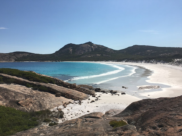 The next few days we spent carving a path across the South Western coastline, passing through Denmark, staying overnight in Albany and then eventually settling in the town of Esperance for a few nights. Our goal here was to spend some time analysing what apparently is some of the whitest sand beaches in Australia, if not the world. The oddly named Hellfire Bay, and the somewhat appropriately named Lucky Bay in (Fedde) Le Grand National Park - 'Put your hands up for Detroit' why don't you - makes the fantastic claim of being bleach white. I mean, they have a process by which every granule of sand is hand bleached over a period of several days and returned to its original location, a process which is completed twice a year (???).............OK, so if you believed that line then I'd suggest you go and finish of that bottle of wine now. Never the less, the sand is in fact impressively white and its contrast against the deep blue of the Southern Ocean epitomises what it is to be on the south-western shores of this continent. Of course the ever so tame kangaroos also sign-post this locations as being unequivocally Australia.